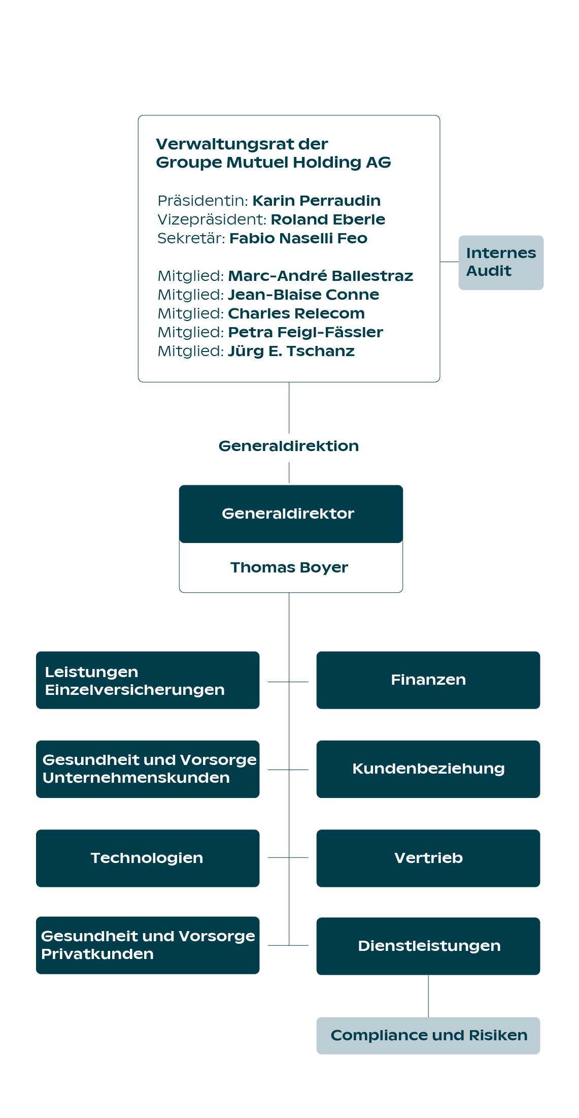 Der Verwaltungsrat entscheidet über die Unternehmensposition und -strategie. Er hat die Oberaufsicht über die Gesellschaften der Groupe Mutuel.