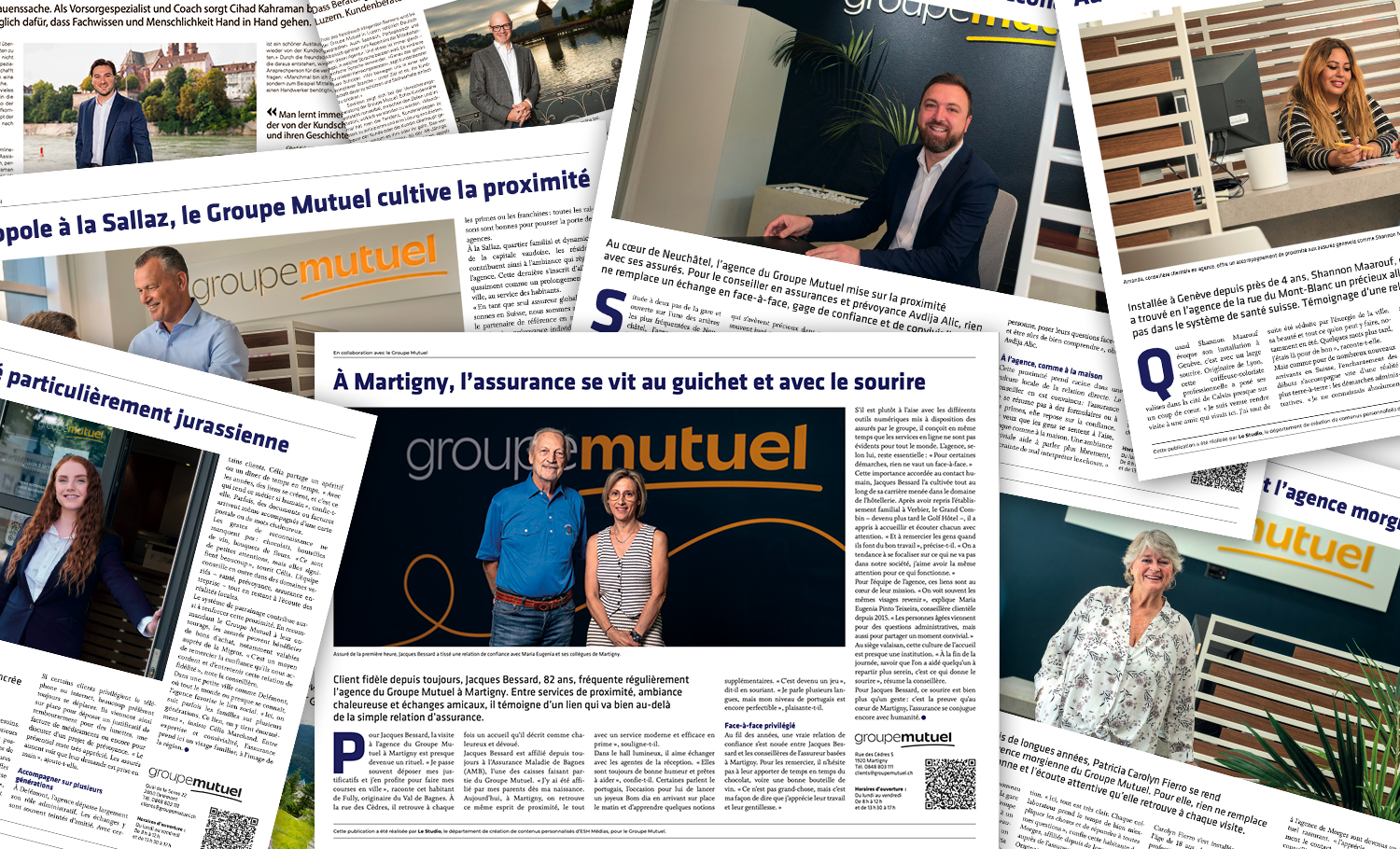 These quotes are taken from three of the many press articles published in mid-September as part of the image campaign on the theme of "proximity". Combined with the features broadcast for the first time on various local radio stations, these articles convey a varied image of what Groupe Mutuel stands for: a caring attitude, proactivity and a sense of responsibility.